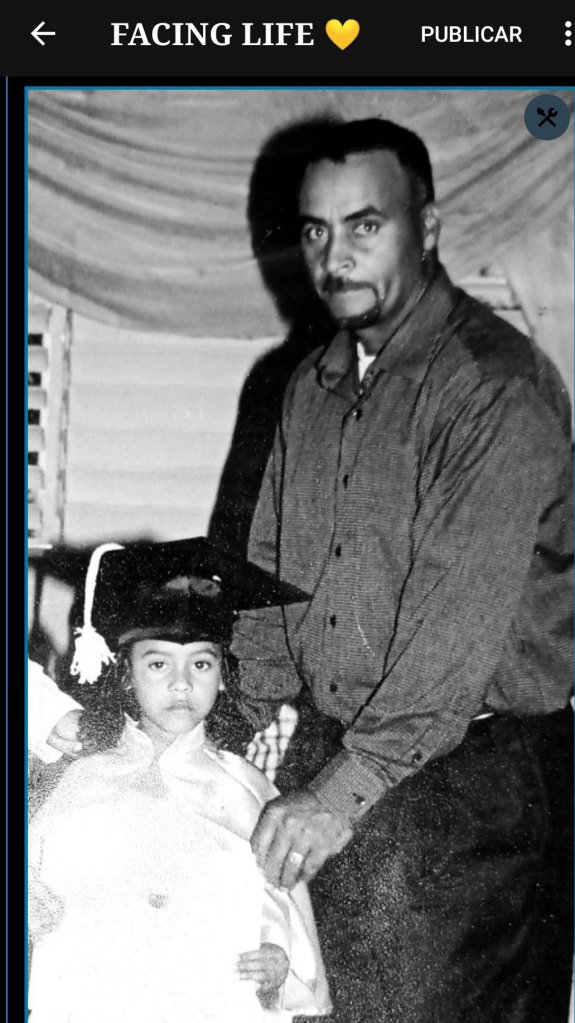 Mí papá, mi amor bonito. Es quien siempre ha estado ahí en los momentos difíciles e importantes… Reuniones escolares, enfermedades, dolores, miedos nocturnos… Posee un corazón tan grande que todas las personas que lo conocen lo quieren como familia, porque él es familia, es amigo de los amigos, es una persona que me ha enseñado tanto, alguien que no guarda rencor en su corazón, alguien que ha pasado por mucho, pero siempre ha estado en pie de lucha para cuidar y llenar de amor a sus niñas.